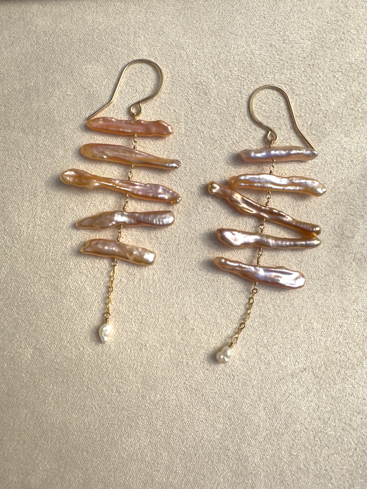 OOAK - Matchstick Pearl Earrings in 14kt Gold-Fill
