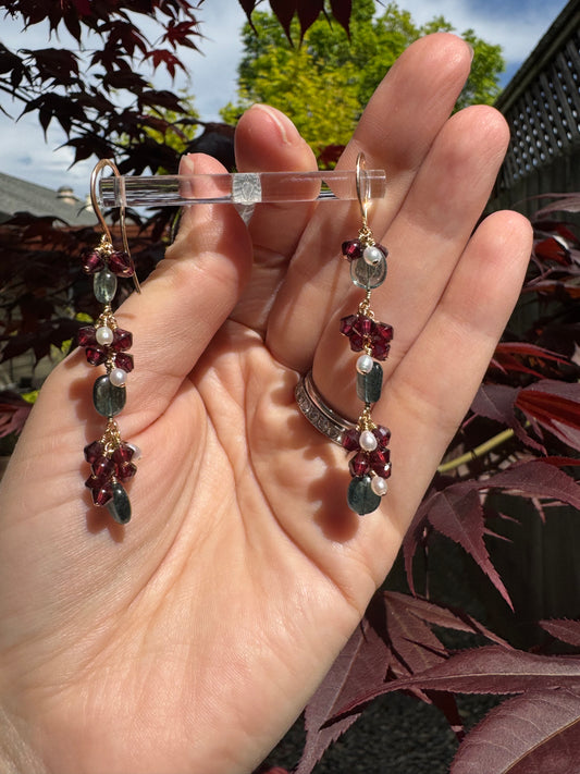 OOAK - Blue Tourmaline, Garnet and Pearl Earrings